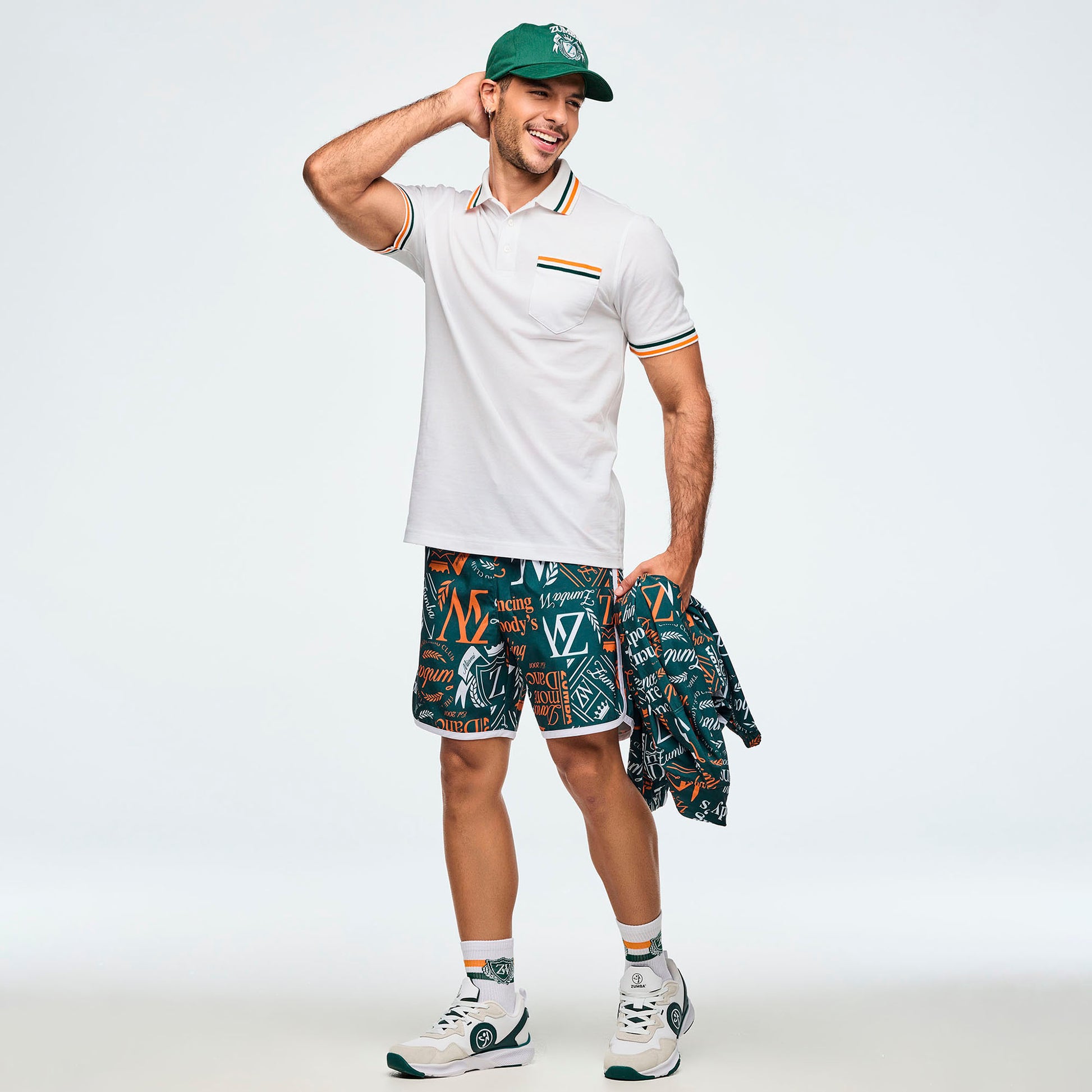 Step up your style game with the Class of 2001 Men's Polo, designed for an easy fit and longer length that feels great all day. Crafted from breathable cotton pique, this polo features a classic collar with a buttoned front placket for a sharp look. The striped flat knit cuffs and pocket trim add a sporty twist, while the exclusive Zumba graphic on the back brings bold personality to your casual wardrobe. Perfect for everything from dance classes to weekend hangouts, it’s a playful way to stay comfortable and stylish wherever you go.
