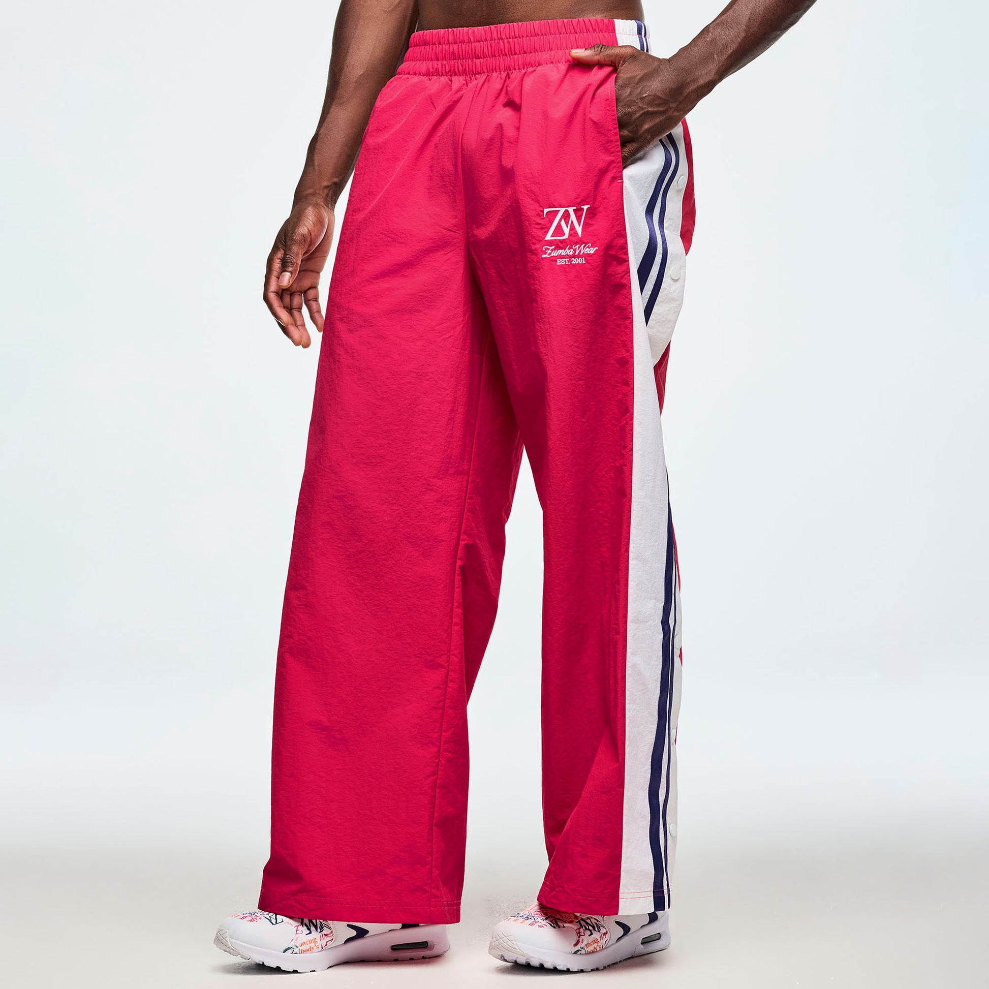 Get ready to turn heads with our **COMING SOON** Class of 2001 Wide Leg Pants! These oversized beauties feature a long 29½" inseam and comfy inseam pockets perfect for stashing your essentials. The standout wide side panels come with a playful snap placket you can open and close to switch up your look on the fly. Bold, color-blocked panels accented with contrast strapping add a pop of fun, while the embroidered branded graphic on the leg gives a stylish nod to the Class of 2001. Crafted from lightweight nylon crinkle, these pants move with you and keep the vibe effortlessly cool. Perfect for dancing, lounging, or making a statement anywhere you go!