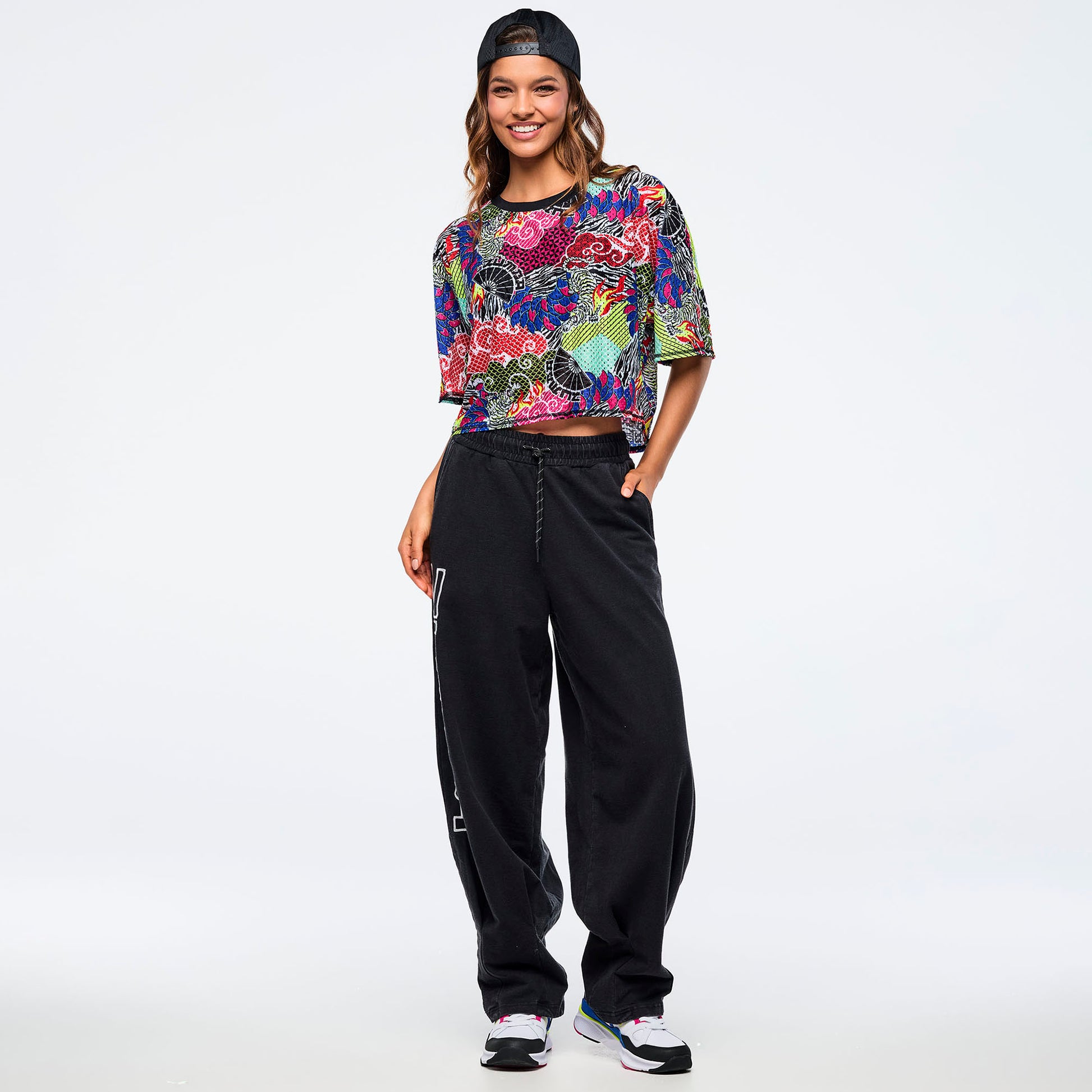 Get ready to turn heads with the Eastern Flavor Boxy Dolman Crop Top – where comfort meets bold style! This playful piece features a relaxed, oversized silhouette with dramatic dolman sleeves that give major fashion-forward vibes. The boxy cut keeps things cool and casual, while the eye-catching all-over graphic print adds personality to every move. With a cropped 20" front length (size S), it hits just right for showing off your style. The lightweight open-hole mesh construction keeps you breathable and comfortable, whether you're dancing, working out, or just living your best life. Perfect for layering or wearing solo, this top brings fun energy to your everyday wardrobe.