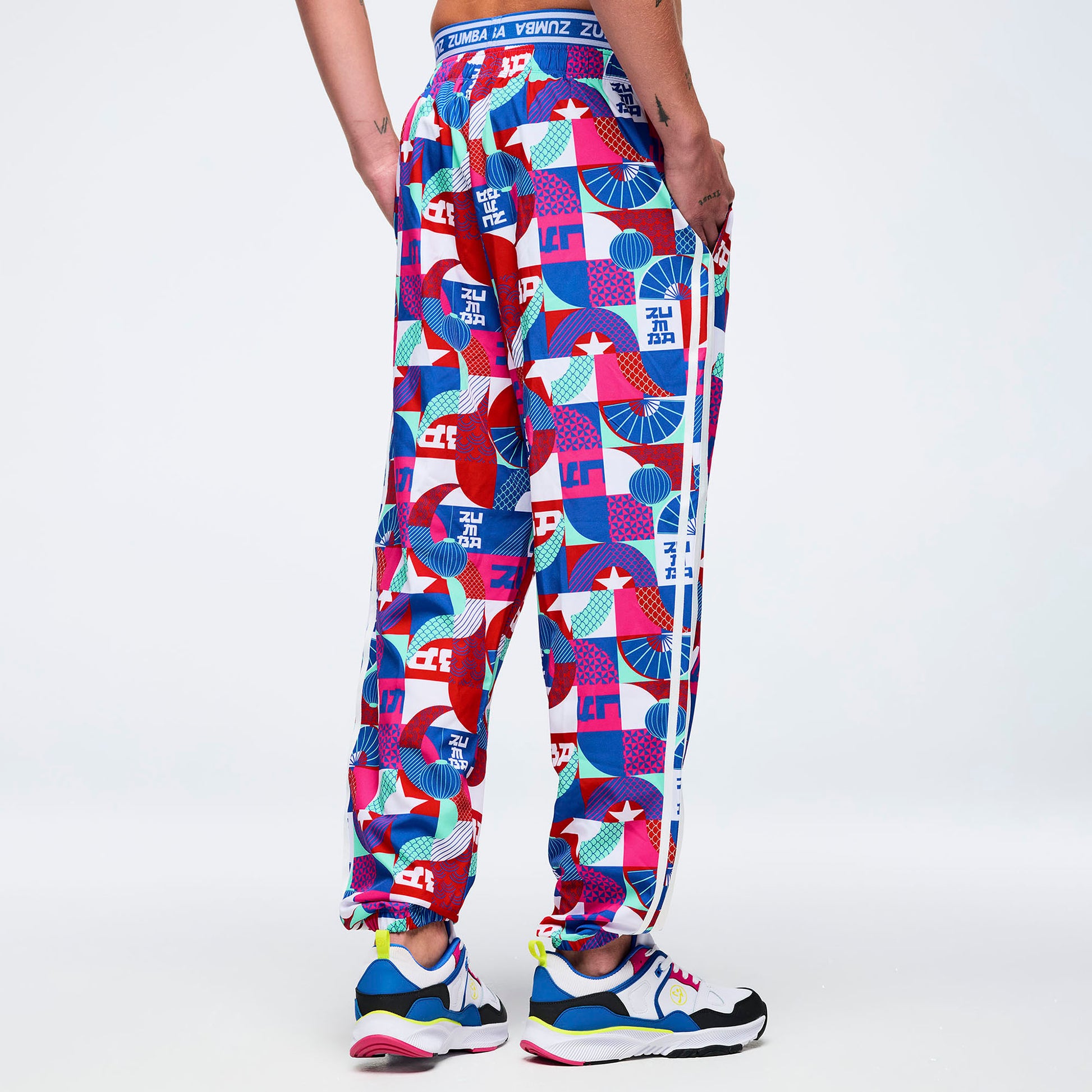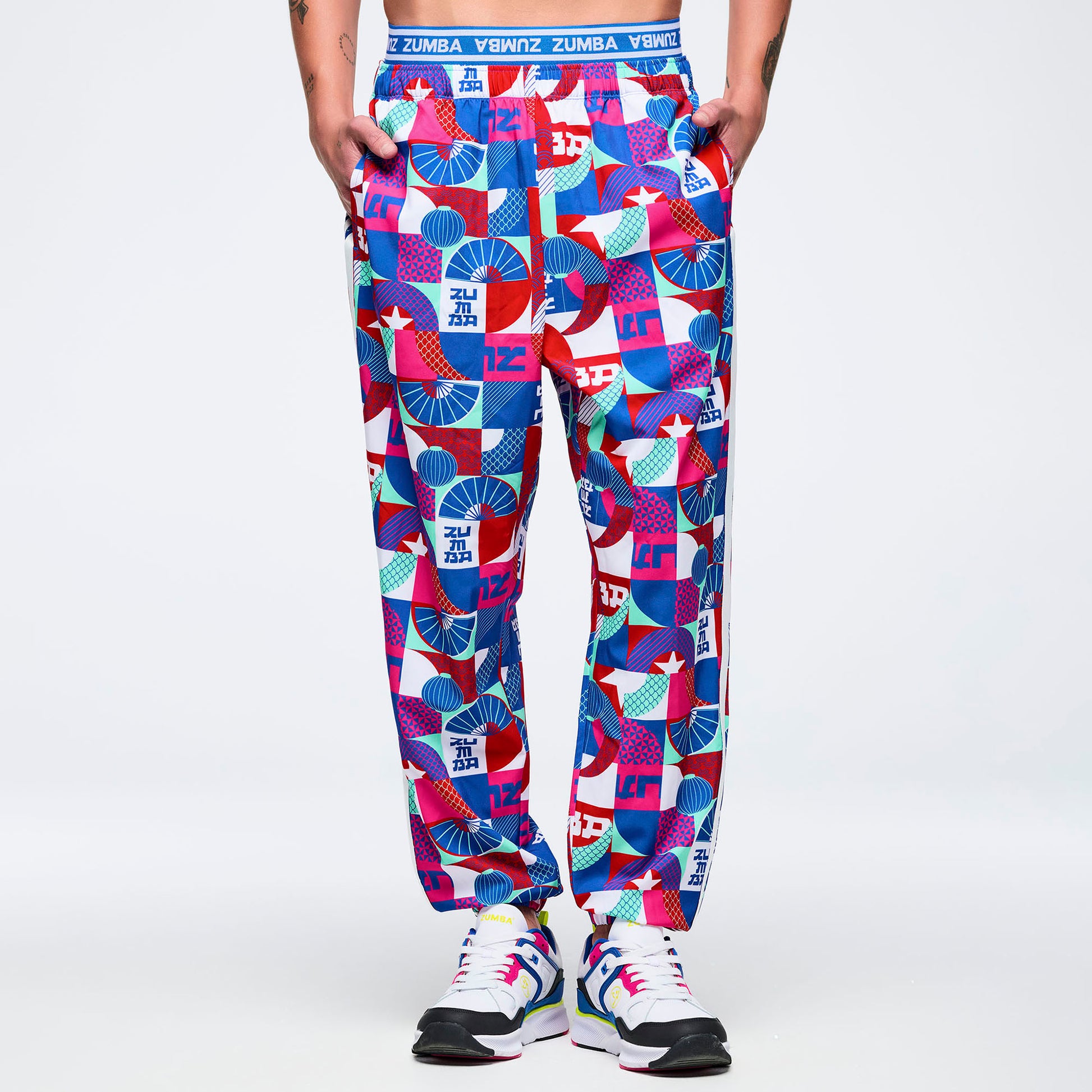 Make a statement with these Eastern Flavor Double Waisted Slouch Woven Pants, designed for dancers who refuse to blend in. The oversized silhouette pairs perfectly with Zumba's bold, energetic vibe, while the 28 1/4" inseam offers the perfect length for unrestricted movement. Eye-catching contrast strapping runs down the outseam for that extra edge, and functional inseam pockets keep your essentials close during class or casual wear. Double waisting with encased elastic at both the top and bottom cuffs ensures a secure, comfortable fit that moves with you. Crafted from nylon woven stretch fabric, these pants deliver flexibility and durability through every shimmy and shake. Topped off with an exclusive all-over Zumba print that screams confidence and fun—because your workout gear should be just as vibrant as your personality.