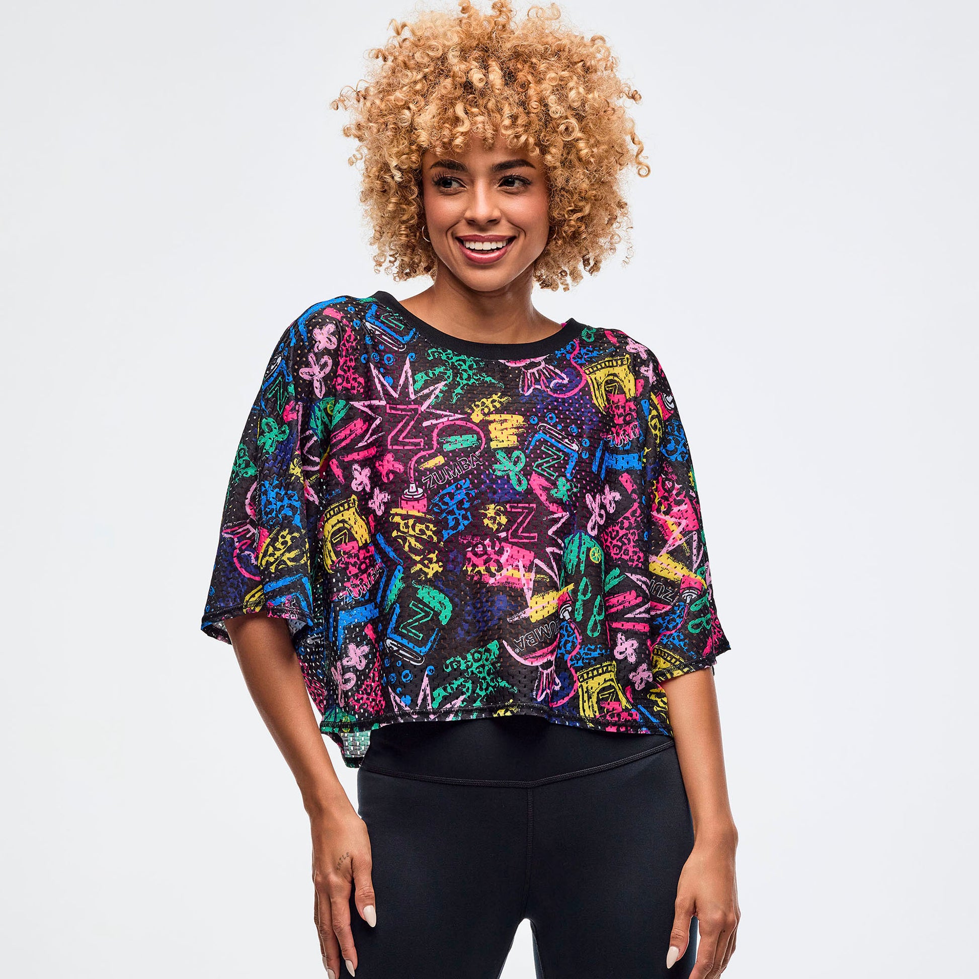 Elevate your workout wardrobe with the Sizzlin' Boxy Dolman Crop Top, designed for both comfort and style. Featuring a relaxed fit and trendy crop length, this top allows effortless movement during your dance sessions. The bend back hem adds a dynamic touch, enhancing your silhouette while keeping you cool. Crafted with a rib knit collar and adorned with a bold, Zumba-exclusive all-over print, it’s a fan favorite that seamlessly blends function with fashion. Perfect for energizing your fitness routine, this crop top ensures you stay confident and comfortable from start to finish.
