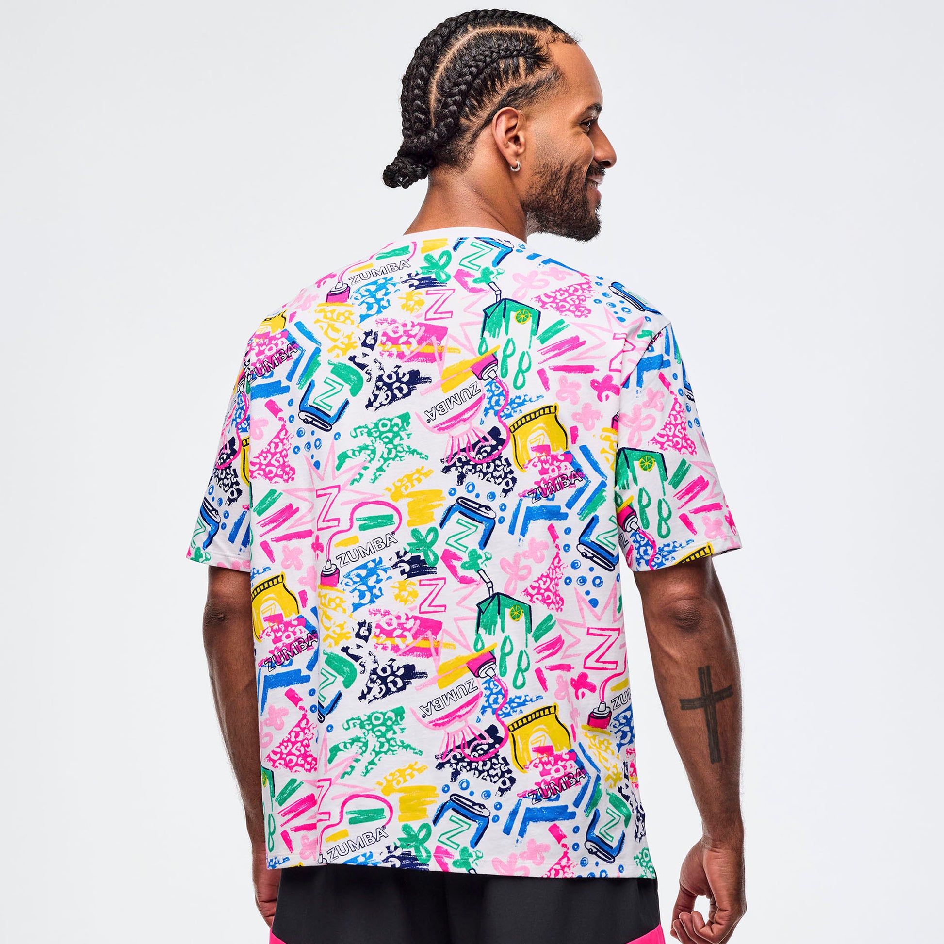 The Sizzlin' Boxy Top offers an oversized fit with a stylish turnback hem, combining comfort and trendiness for your active lifestyle. Its long length and fan-favorite rib knit collar enhance both coverage and support, while side vents provide freedom of movement during every workout. Featuring a bold, exclusive all-over Zumba print, this top lets you stand out with confidence as you move. Perfect for dance fitness enthusiasts seeking both style and function in one vibrant piece.