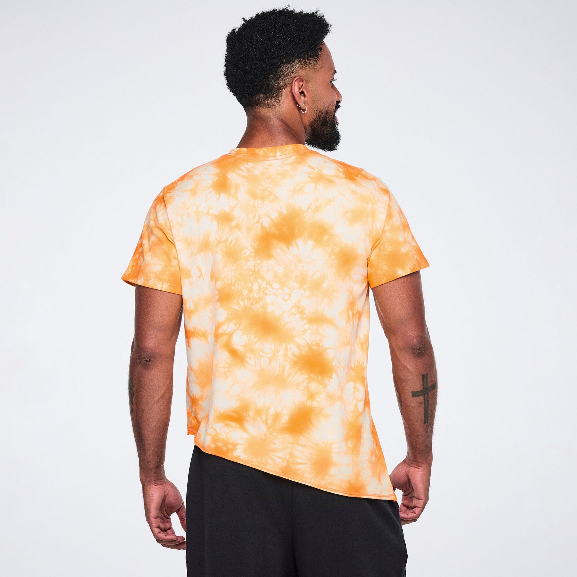 Stand out on the dance floor with the Wildbeat Unisex Asymmetrical Tee—where bold design meets comfort. This midweight cotton essential features an eye-catching asymmetrical raw-cut hem and edgy raw edges at the armholes and bottom, giving you that effortlessly cool vibe. Rock the branded Zumba print on the chest and embrace the unique tie-dye magic that makes every tee one-of-a-kind. With a classic rib knit neck and a relaxed unisex fit, it's your go-to piece for class, the gym, or just living your best life.