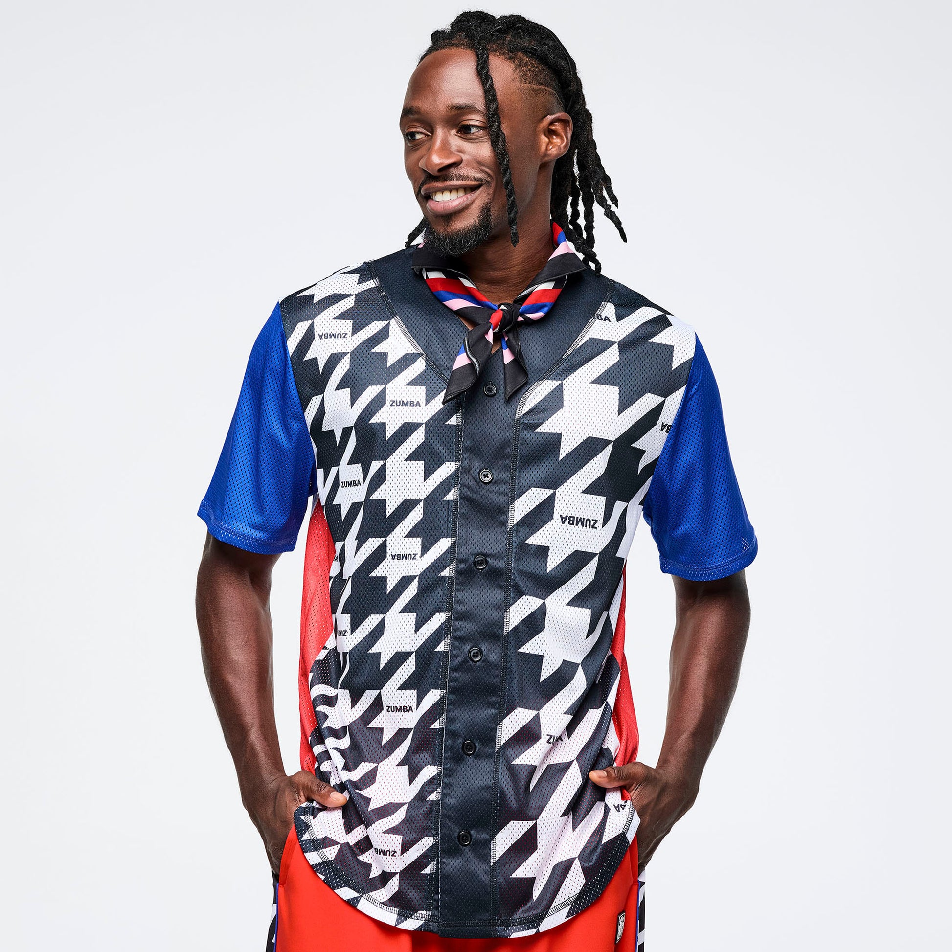 Get ready to add some flair to your Zumba sessions! This dynamic 2-pack features two vibrant bandanas, each with its own personality. The first showcases a bold houndstooth design framed by eye-catching colors, while the second brings its own unique style to the mix. At 25" x 25", these Zumba-branded accessories are perfect for keeping your hair in place while you dance, adding that extra pop of color to your workout wardrobe. Mix, match, and express yourself with every move!