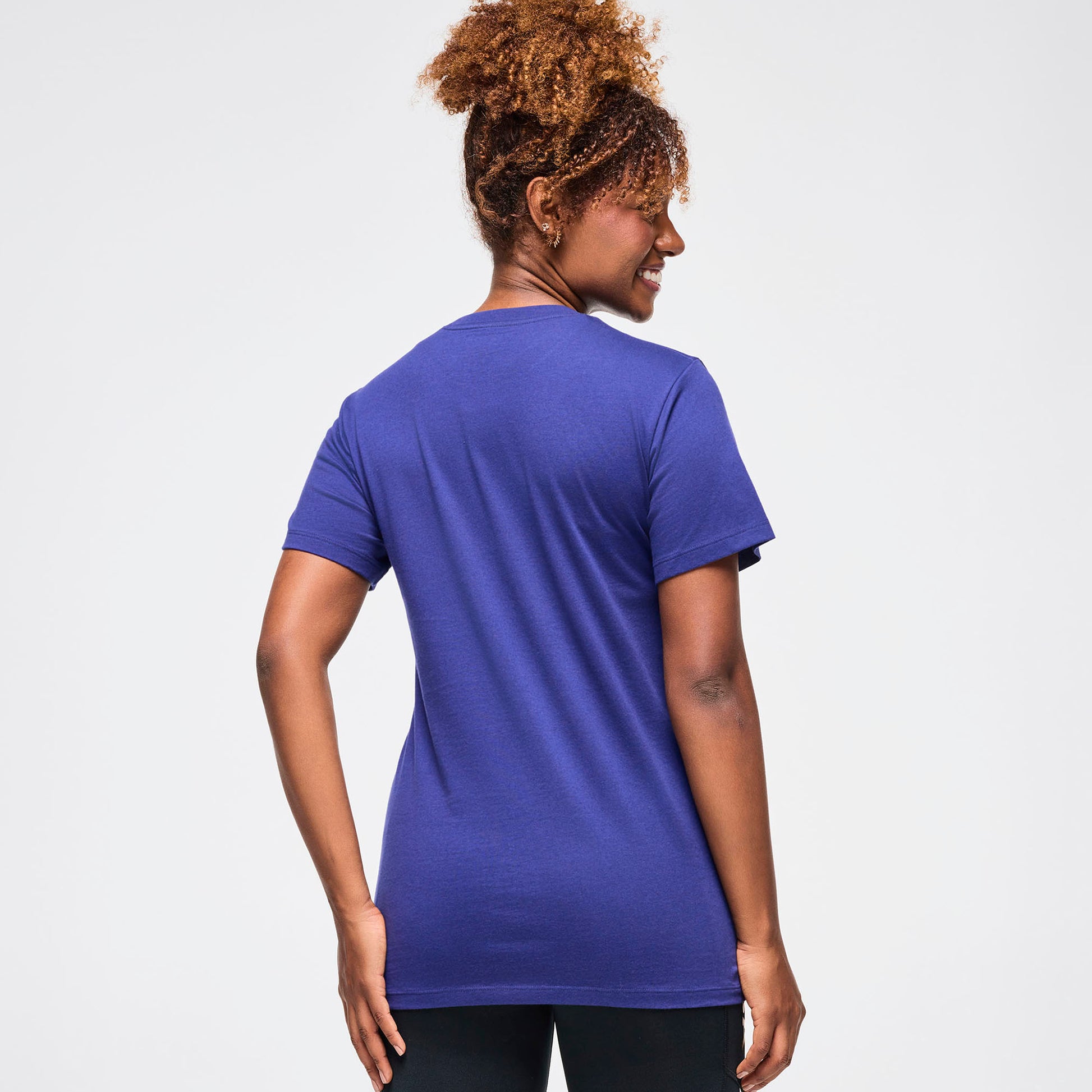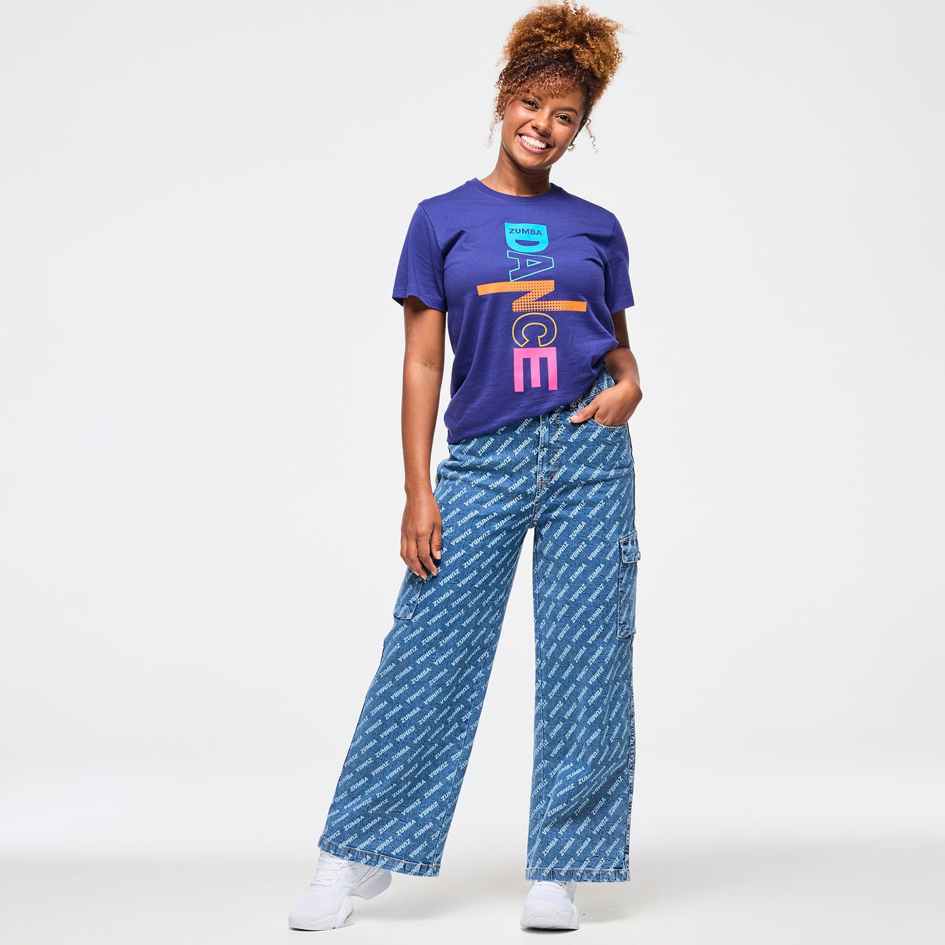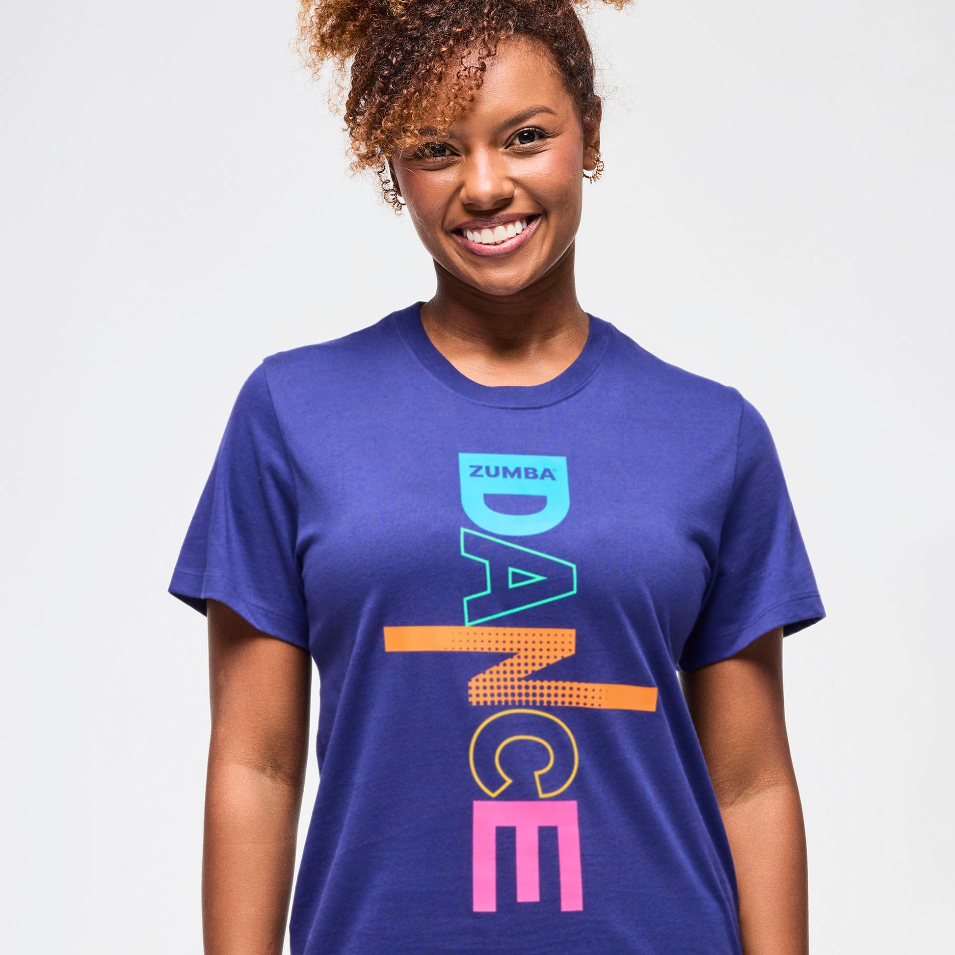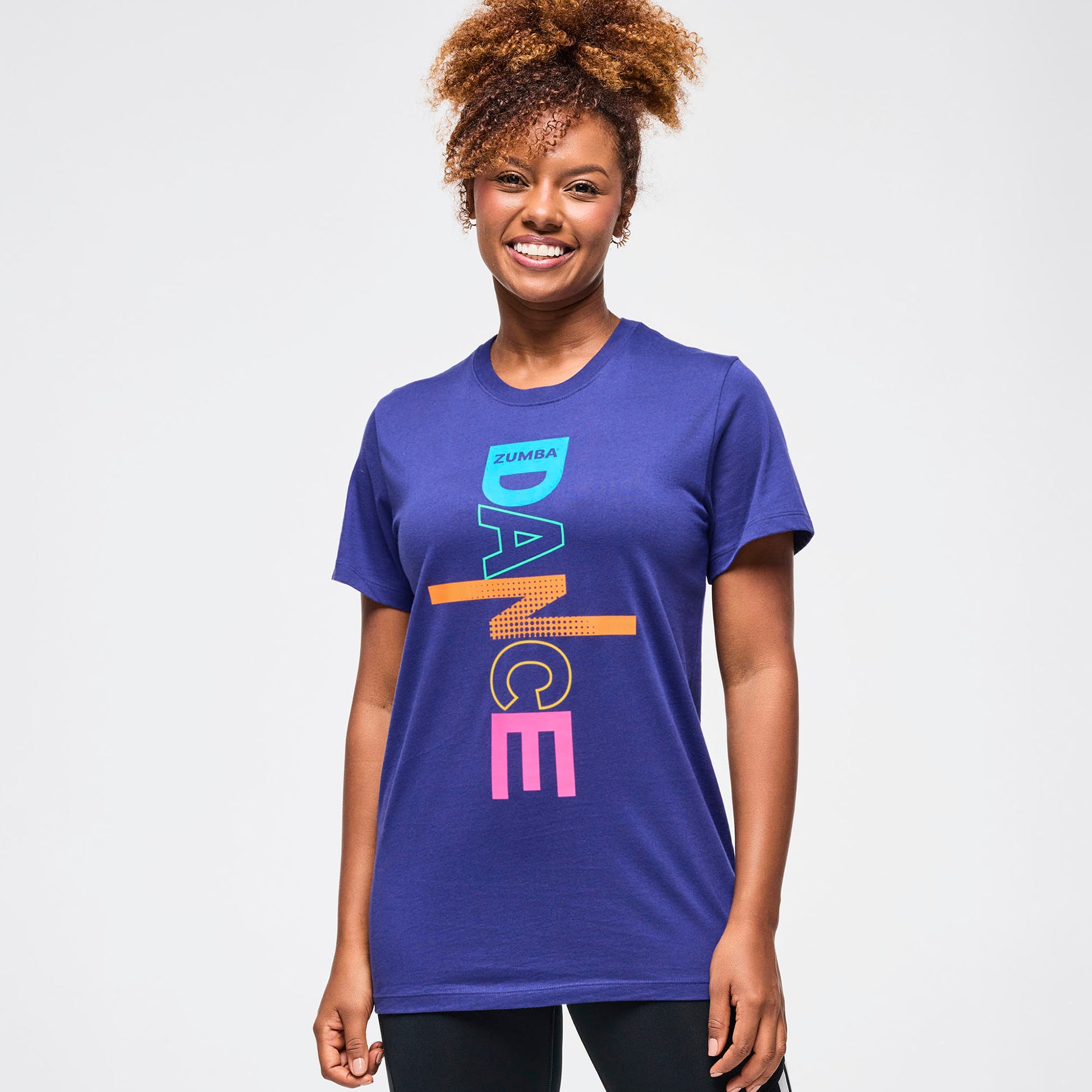Zumba® Dance Tee - the ultimate expression of your dance passion! This easy-fit cotton tee features a comfortable long length that moves with you while you shake and shimmy. The rib knit neckband provides durability and comfort during even your most energetic routines. Showcasing our exclusive empowering graphic print, this playful tee lets everyone know you're ready to party!