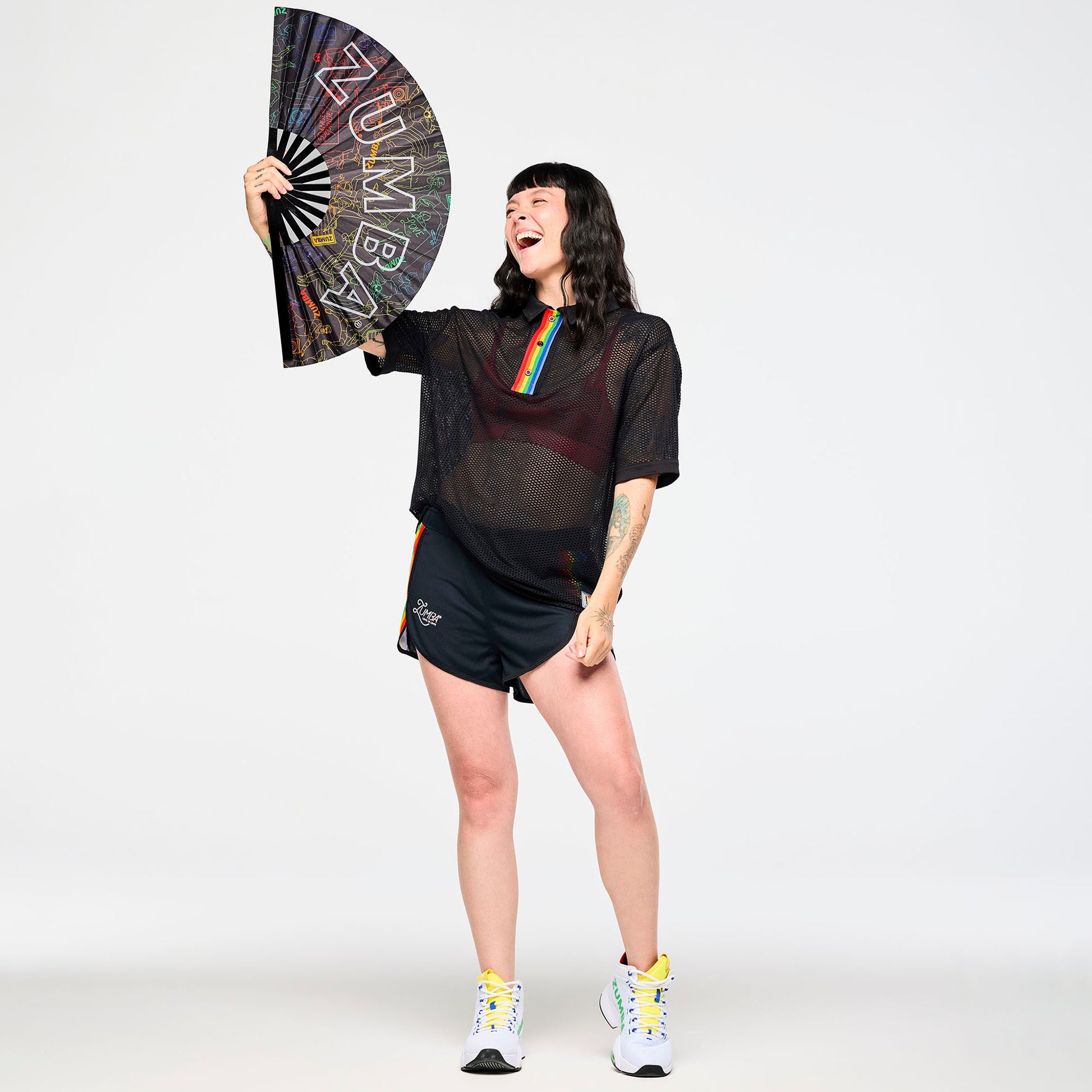 Spread Zumba® love and show off your pride with this vibrant Rainbow Ombre Hand Fan. Perfect for fanatics of the Zumba® community, this hand fan will keep you cool with its bamboo sticks while you dance and wave your flags. Get ready to dance and beat the heat with this fan that's as bright and bold as your spirit!