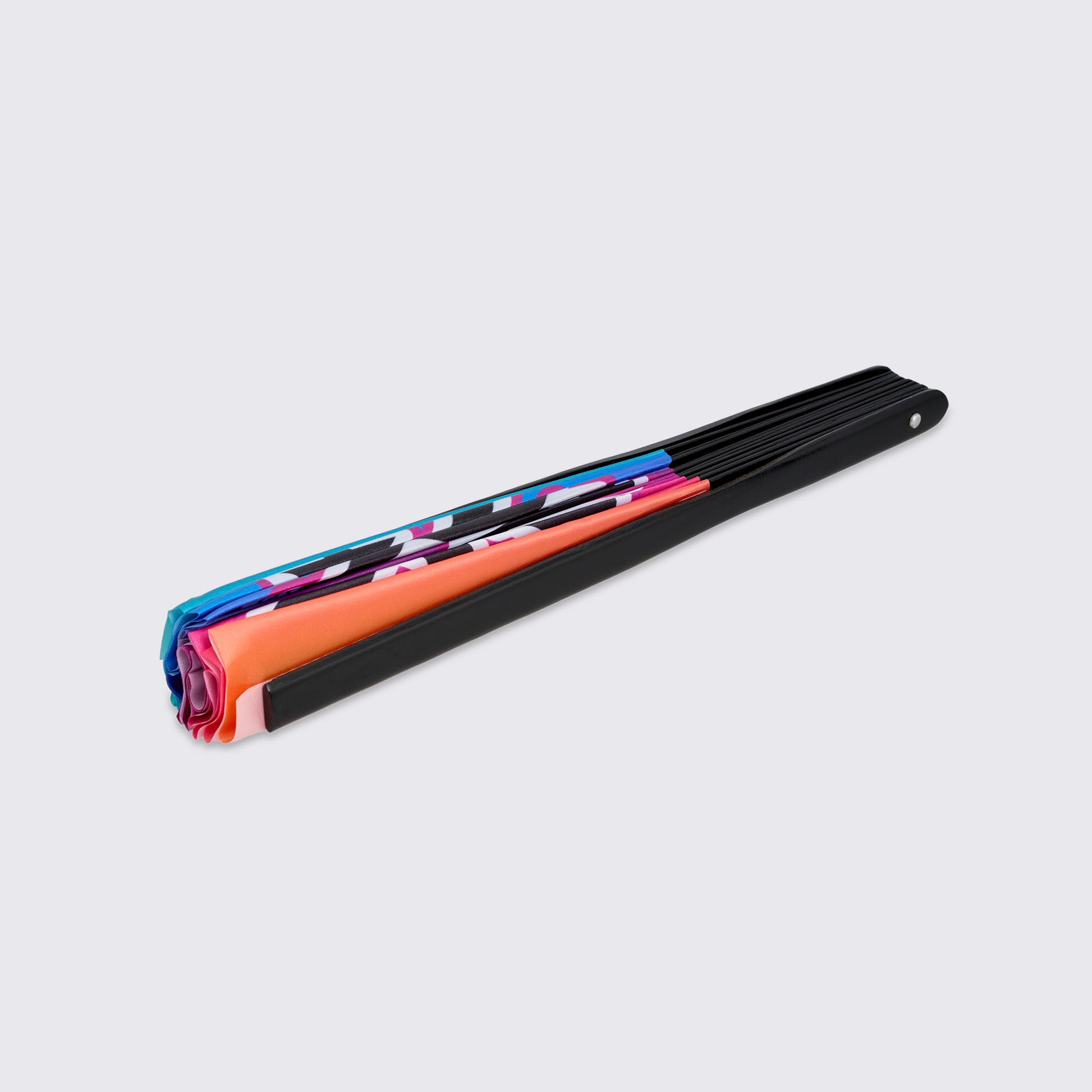 Elevate your dance energy with the Zumba® Libre Fan, a vibrant accessory designed for style and function. Featuring an eye-catching ombre design, this hand fan boldly displays the Zumba logo outlined and surrounded by stars, symbolizing movement and rhythm. Crafted with durable bamboo sticks, it offers a lightweight yet sturdy grip, perfect for cooling down between routines or adding flair to your performance. Whether you're dancing or relaxing, this fan combines practicality with a dynamic look that complements your Zumba lifestyle. Make every beat unforgettable with this unique, must-have fan.