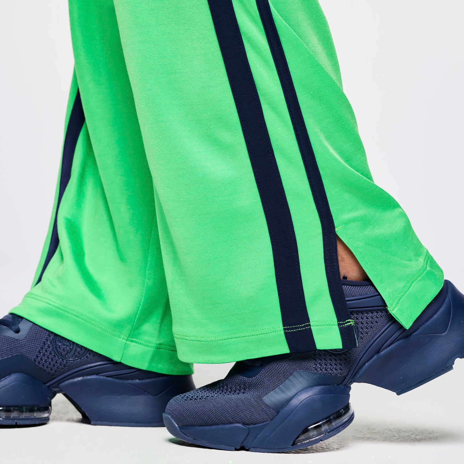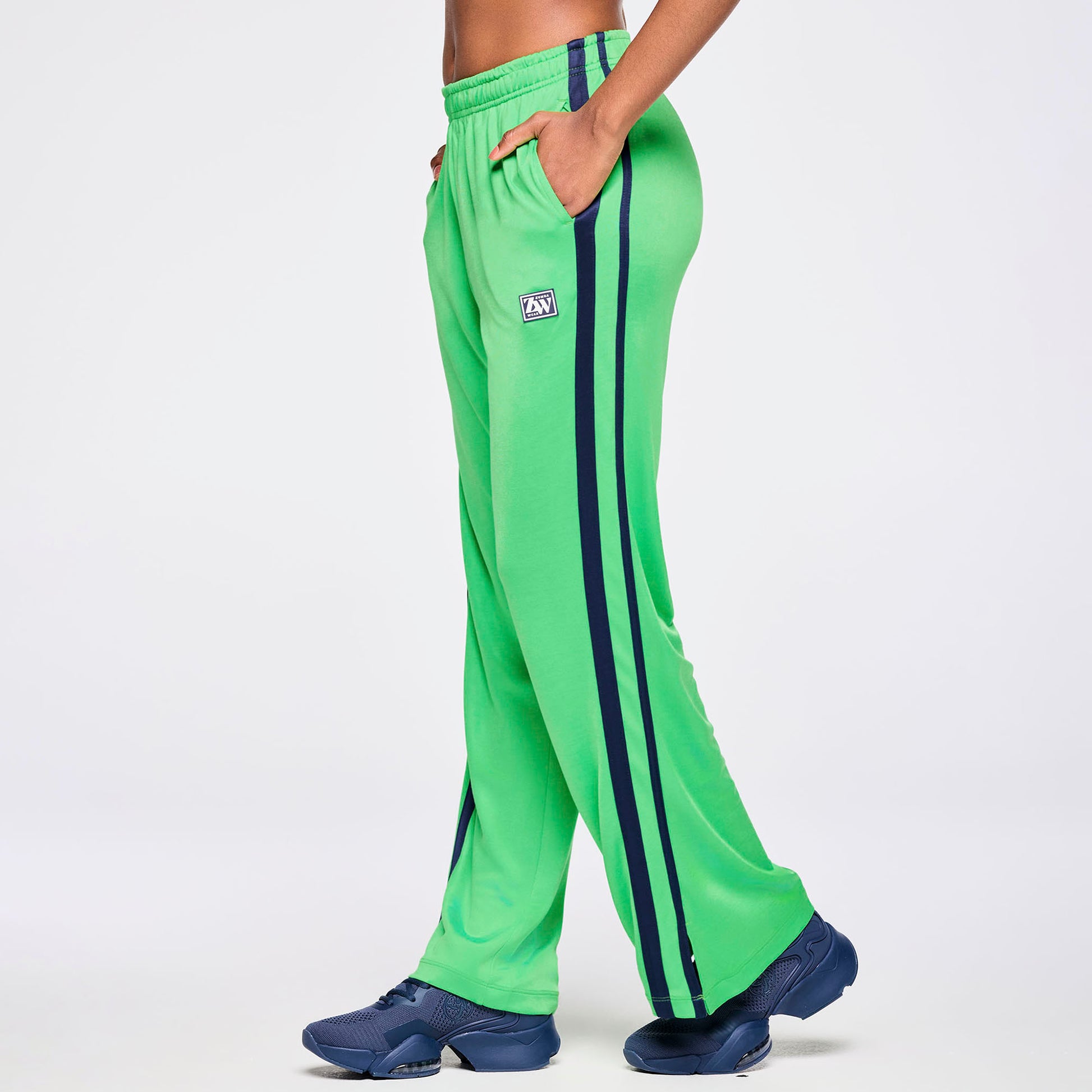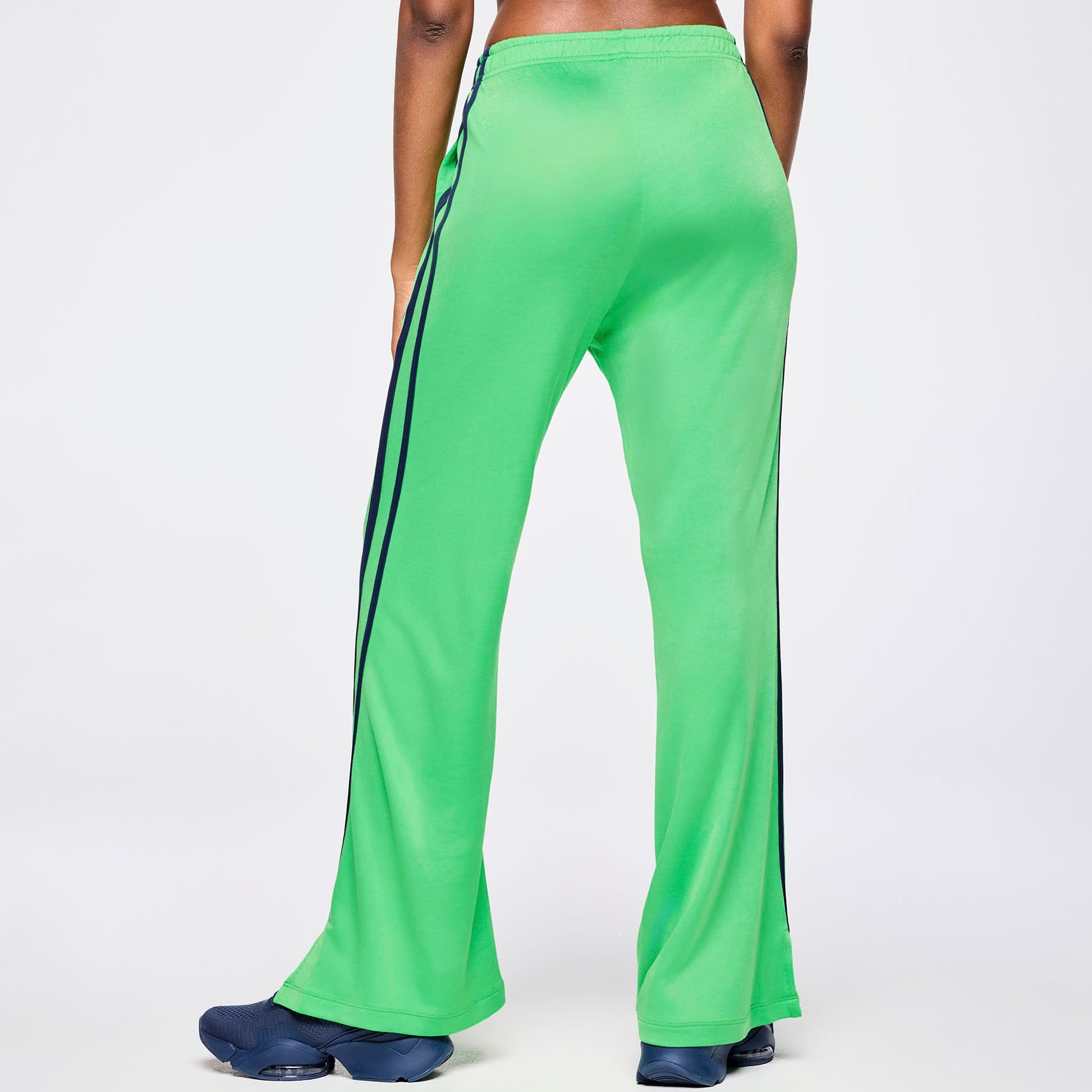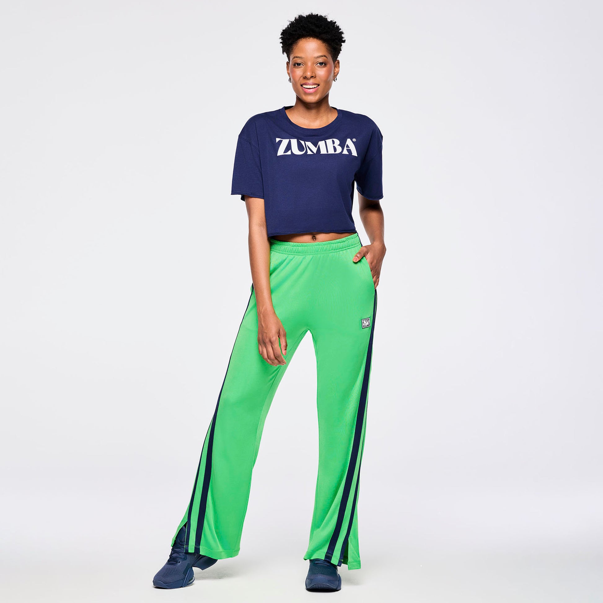 Made for comfort and style, our Zumba® Out Loud Mid Rise Track Pants offer a relaxed fit, perfect for any activity. With a flattering mid rise, these pants have a 29 1/2' inseam and encased elastic in the waistband for a customizable fit. Featuring inseam pockets and side vents at the bottom leg, these pants provide convenience without sacrificing fashion. Plus, the shiny double knit fabric adds a touch of flair to your workout wardrobe. Upgrade your fitness fashion with these must-have track pants!