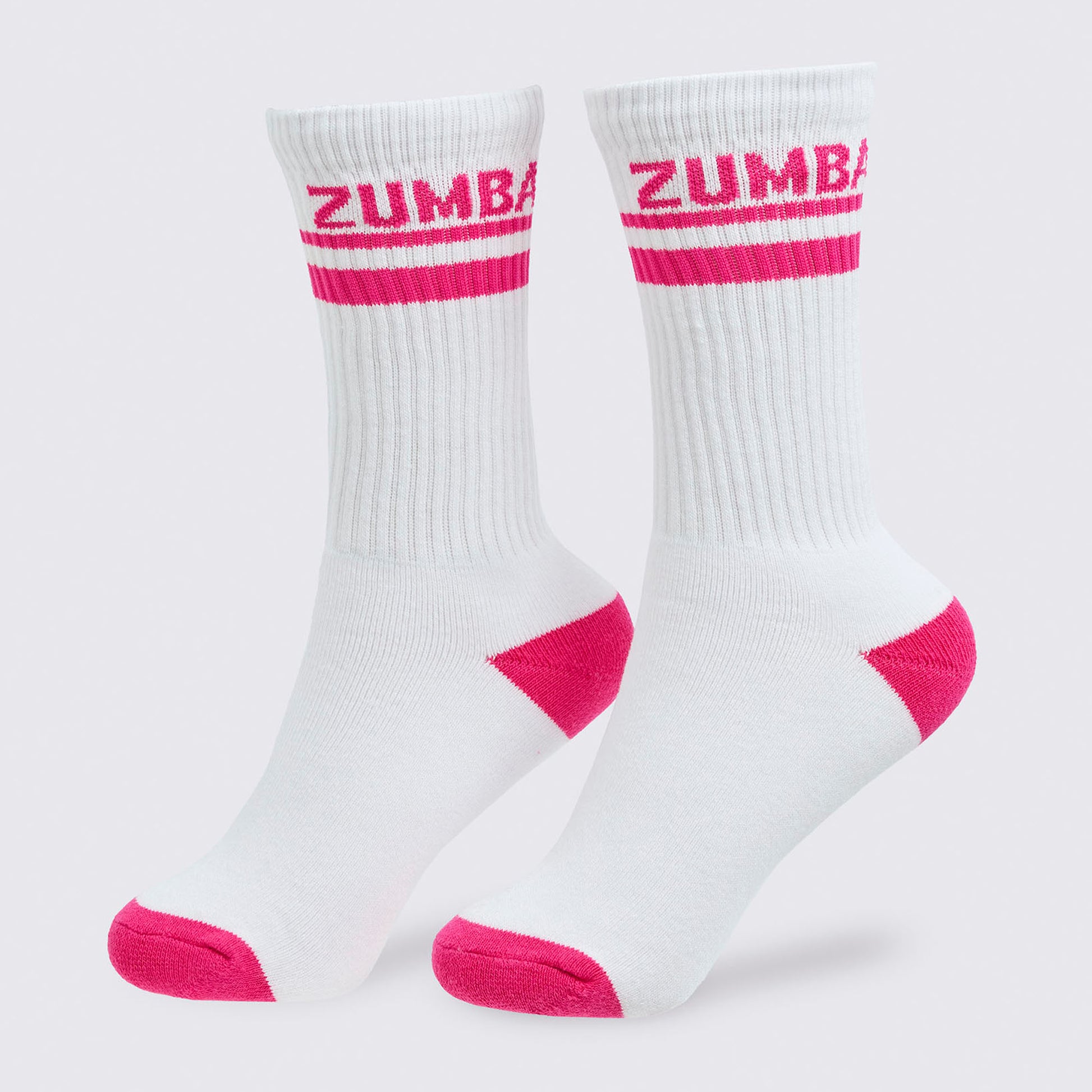 Love Zumba® but tired of boring socks? These Core Plush High Socks are a functional, comfortable and stylish way to show off your love for Zumba® in the studio and on the streets! With ribbed ankle support and plush terry knit, your feet will appreciate the comfort as you dance your heart out. The top of the socks feature a playful Zumba® logo with multiple stripes, keeping you stylish and on-trend during every workout. Don't sacrifice comfort for style with these fun and functional socks - perfect for any diehard Zumba® lover!